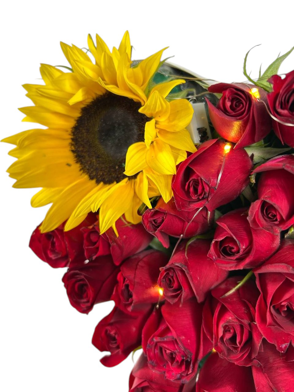 Arreglo Floral de 40 Rosas y Girasoles con Luz | Amor Luminoso