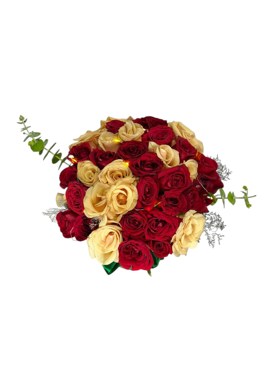 25 rosas crema y 25 rojas iluminadas con serie de luz LED para un detalle que brilla con amor