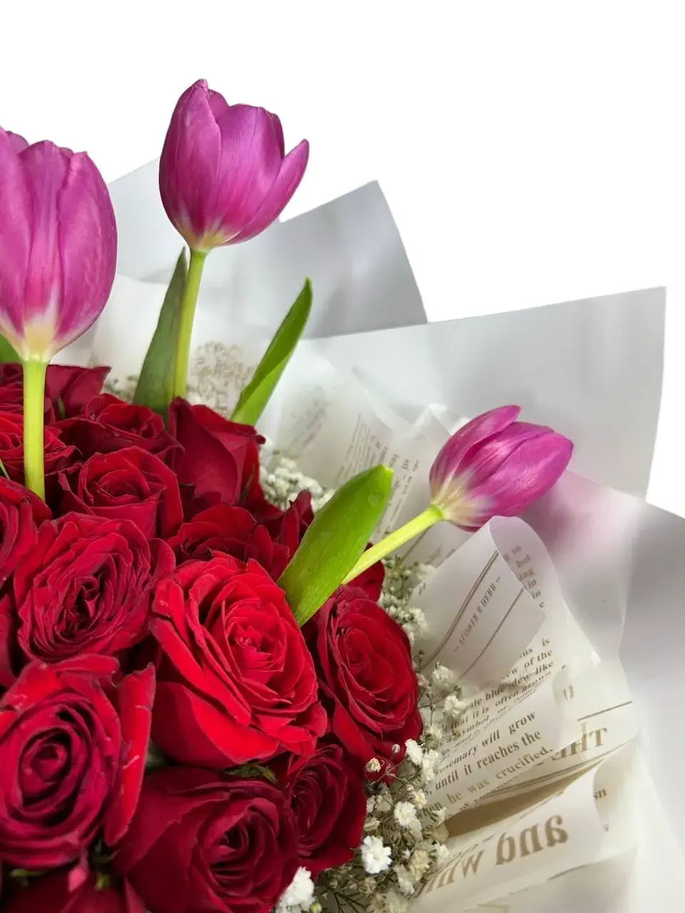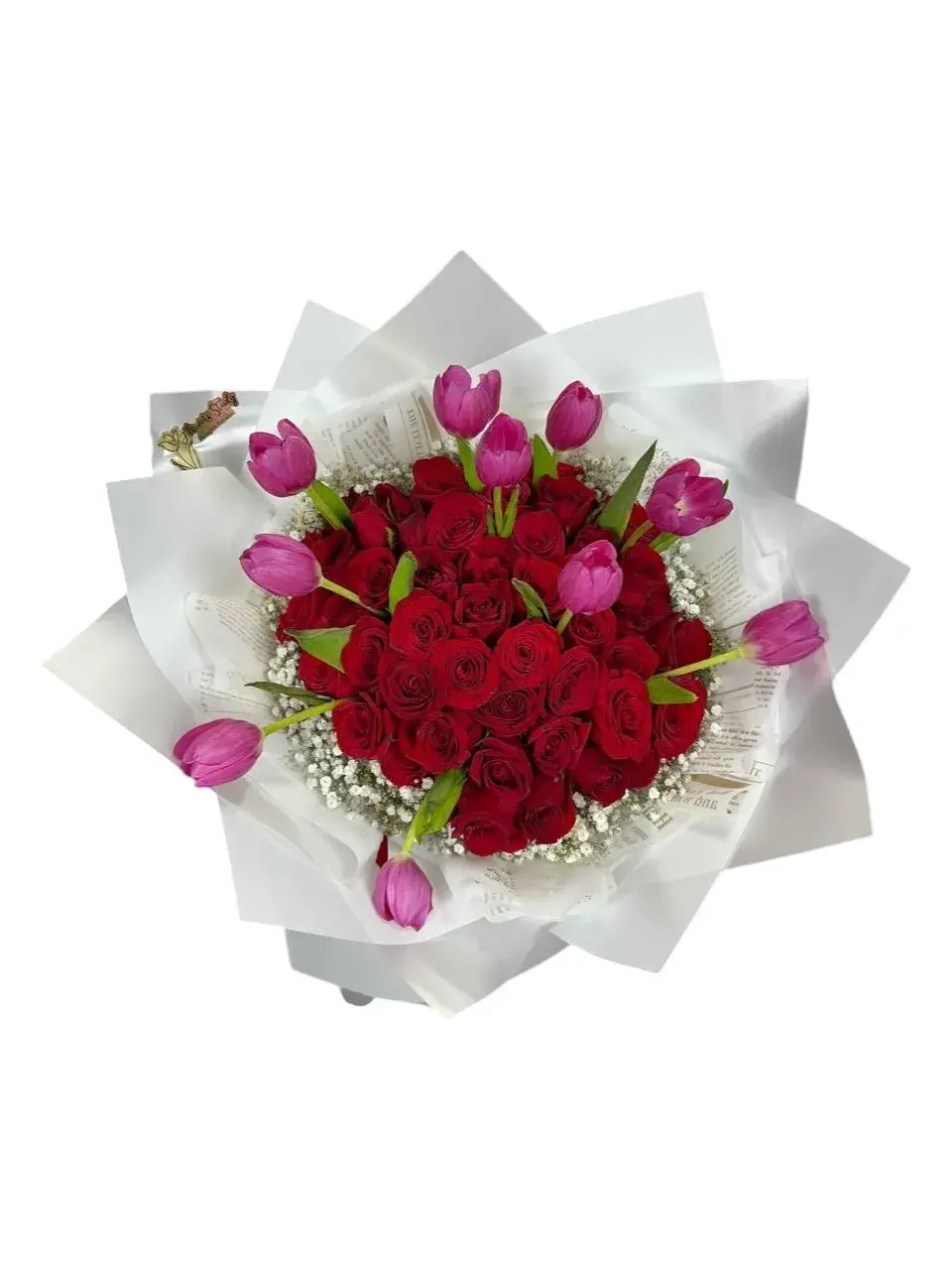 Ramo de 50 Rosas Rojas y Tulipanes | Fucsia de Amor