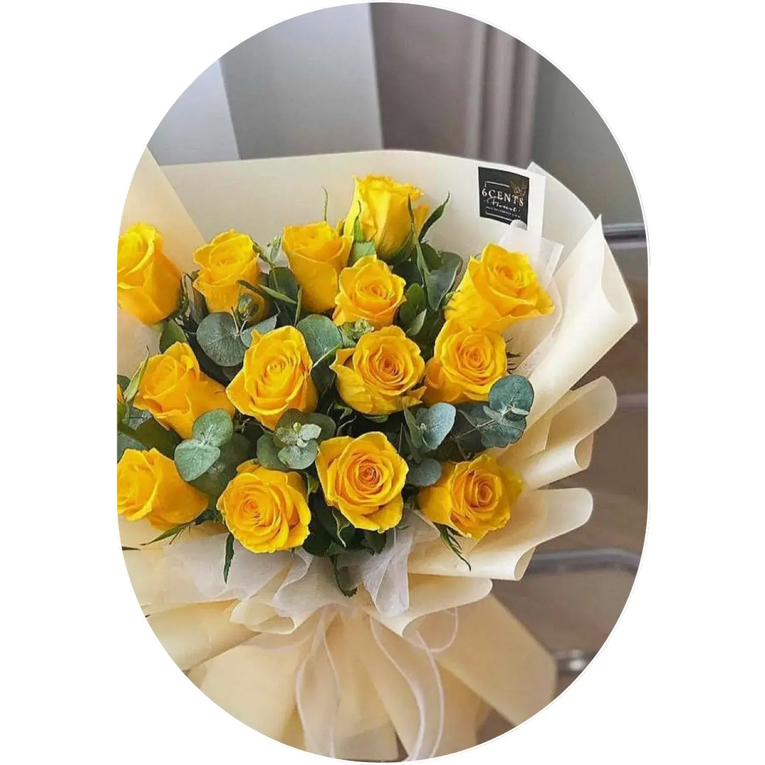Expresa alegría y gratitud con este hermoso ramo de 24 rosas amarillas acompañado de follaje mixto o dollar, un diseño que resalta la frescura y energía de las flores amarillas. Perfecto para regalar en el 21 de septiembre o en cualquier celebración donde quieras transmitir amistad y buenos deseos.