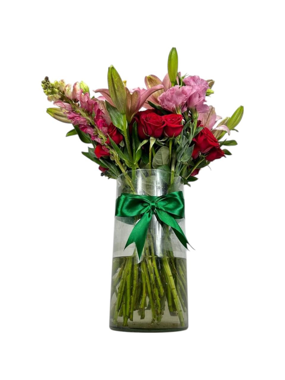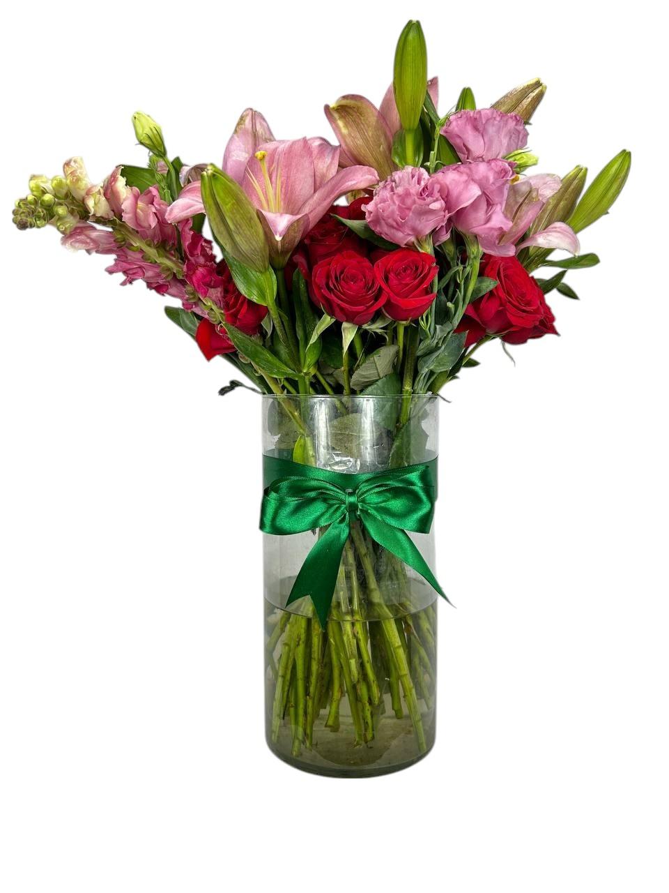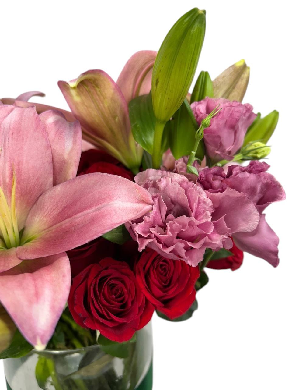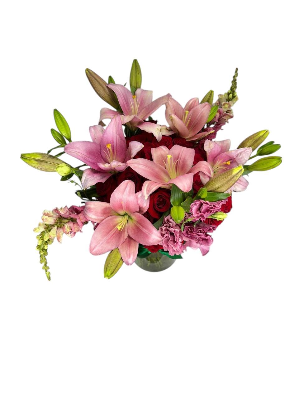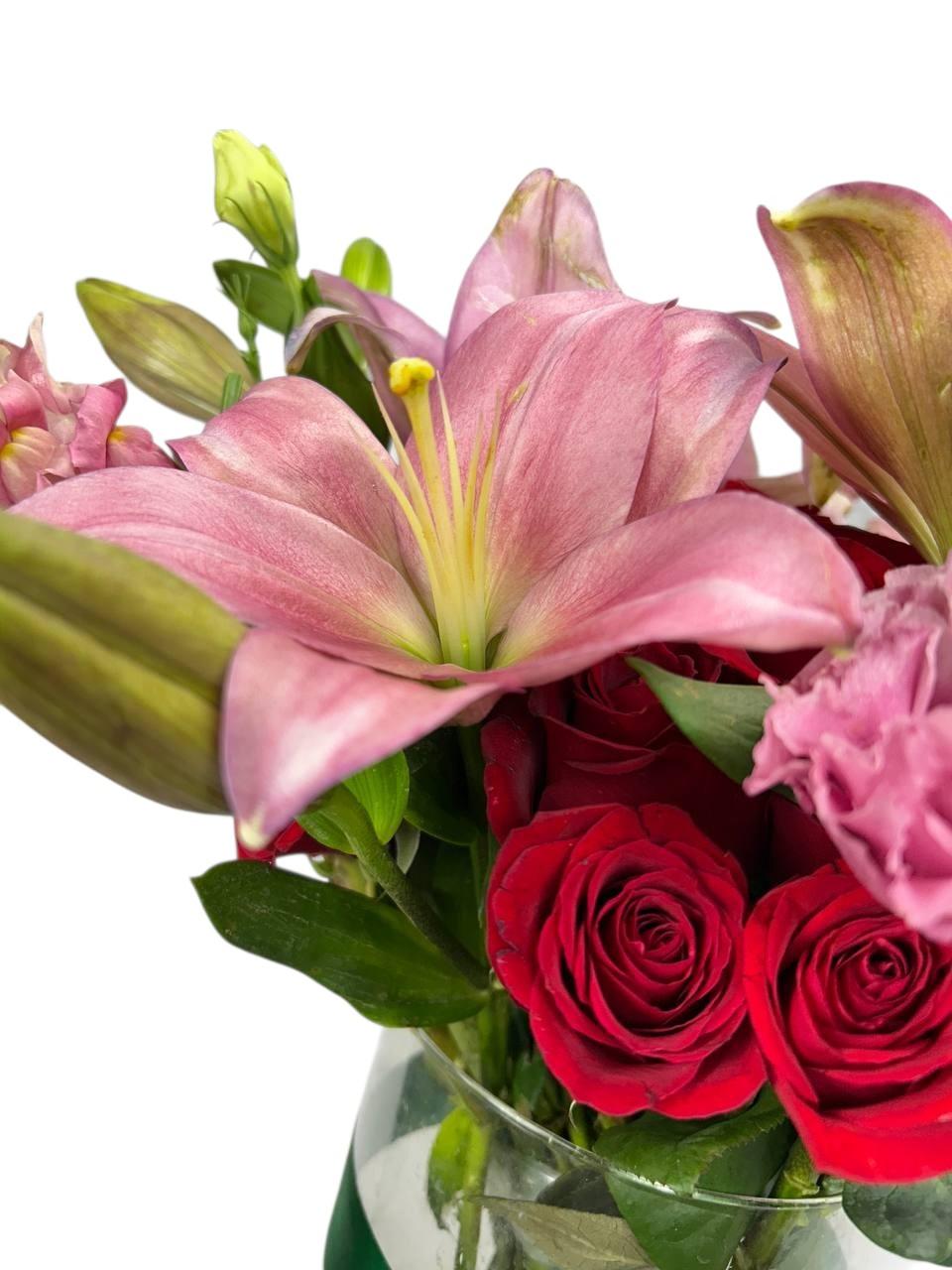Arreglo Floral de Rosas y Lirios | Rojo Infinito